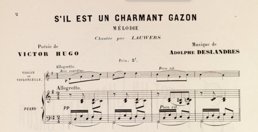 Il 30 luglio 1911, muore a Parigi l’organista e compositore Adolphe-Edouard-Marie Deslandres. MyCello lo ricorda proponendo lo spartito del suo S’il est un charmant gazon. Mélodie avec accomp.t de violon ou violoncelle et piano. Poésie de Victor Hugo.