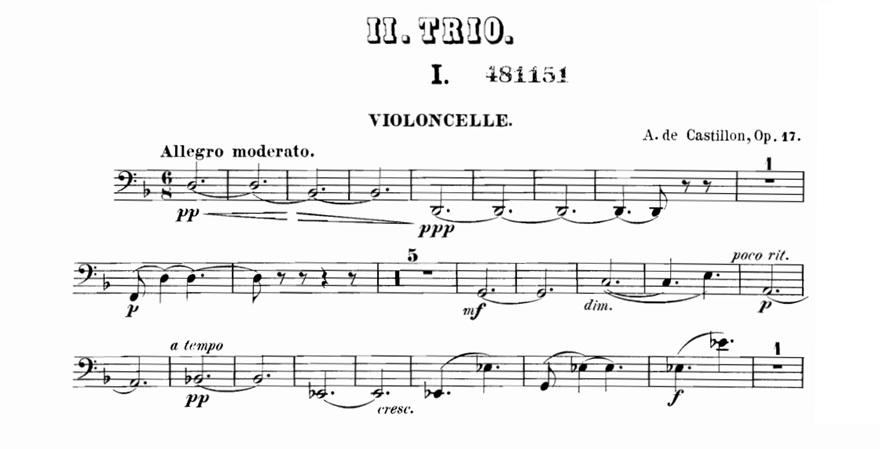 Il 13 dicembre 1838, nasce a Chartres il compositore Alexis De Castillon. MyCello lo ricorda proponendo l’ascolto e lo spartito del suo Piano Trio No.2, Op.17.