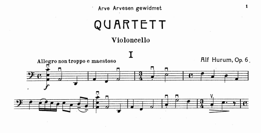 Il 21 settembre 1882, nasce a Oslo il compositore Alf Hurum. MyCello lo ricorda proponendo l’ascolto e lo spartito del suo String Quartet, A Minor, Op.6.