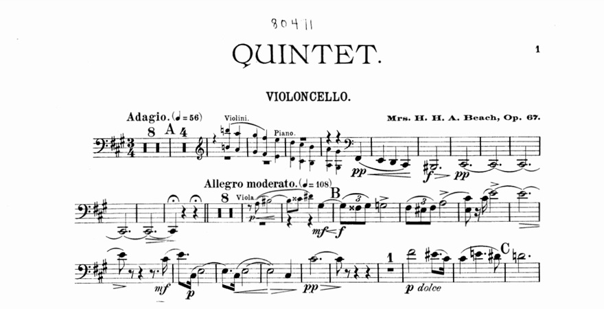 Il 27 dicembre 1944, muore a New York la pianista e compositrice Amy Marcy Beach. MyCello la ricorda proponendo l’ascolto e lo spartito del suo Piano Quintet, Op.67.