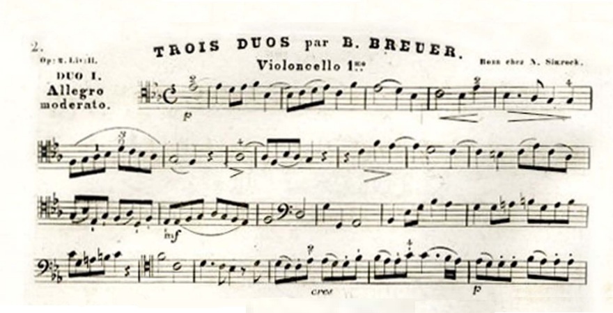 Il 16 ottobre 1877, muore ad Aquisgrana il violoncellista e compositore Bernhard Breuer. MyCello lo ricorda proponendo lo spartito dei suoi 3 Cello Duets, Op.2.