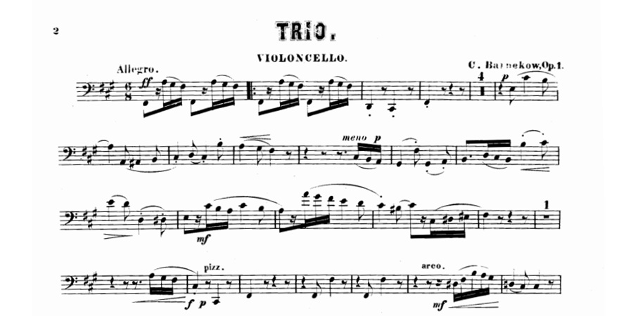 Il 20 marzo 1913, muore a Frederiksberg il compositore Christian Barnekow. Mycello lo ricorda proponendo lo spartito del suo Piano Trio, Op.1.