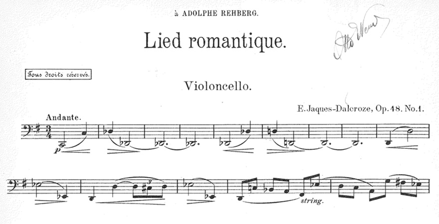 Émile Jaques-Delcroze, Lied Romantique, Op.48, No1 for cello and piano