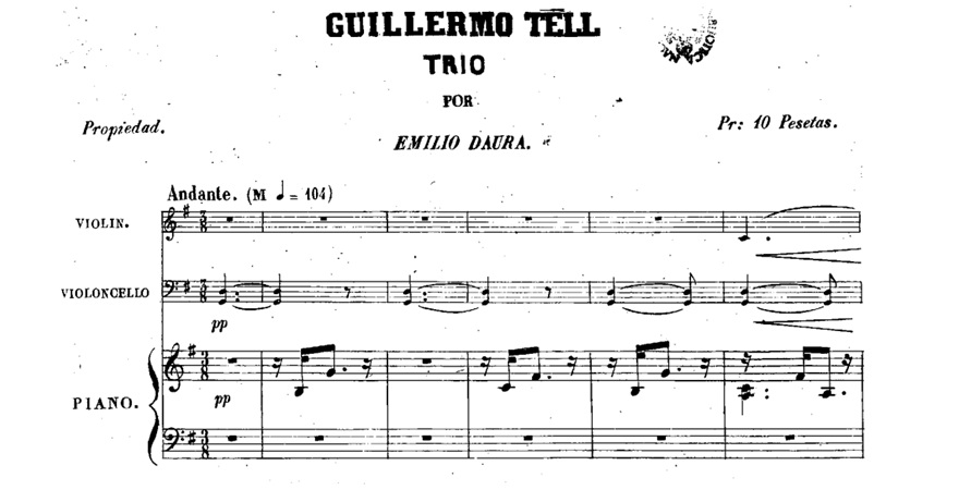 Il 18 febbraio 1845, nasce a Terrassa, il compositore Emilio Daura. MyCello lo ricorda proponendo lo spartito del suo Trio sobre ‘Guillaume Tell’.