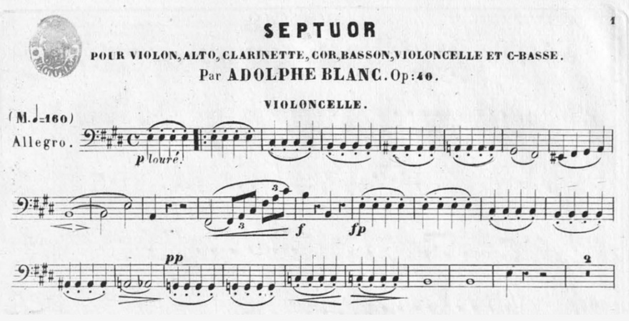 On June 10, 1885, the composer Adolphe Blanc died in Paris. MYCello remembers him by proposing a musical video and the score of his Septet in E, Op.40 (1860).