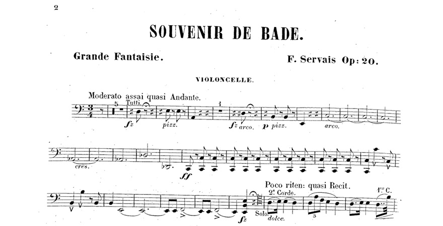 On November 26, 1866, the cellist and composer Adrien-François Servais died in Halle. MyCello remembers him by  proposing a music video and the score of his Souvenir de Bade, Op.20.
