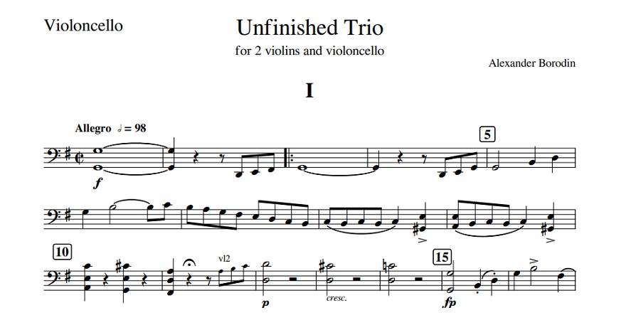 On November 12, 1833, the composer Aleksandr Borodin was born in Saint Petersburg. MyCello remembers him by proposing a music video and the score of his String Trio in G major.