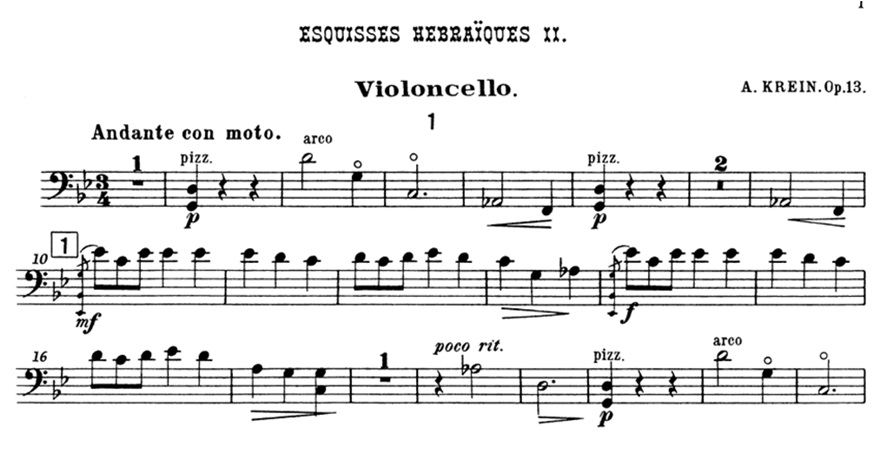 On October 20, 1883, the cellist and composer Aleksandr Krein was born in Nižnij Novgorod. MyCello remembers him by proposing a music video and the score of his Esquisses hebraïques, Op.13.