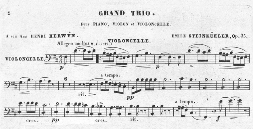 On November 21, 1872, the pianist, violinist, and composer Emile Steinkühler died in Gand. Mycello remembers him by proposing the score of his Grand Trio, Op.35.