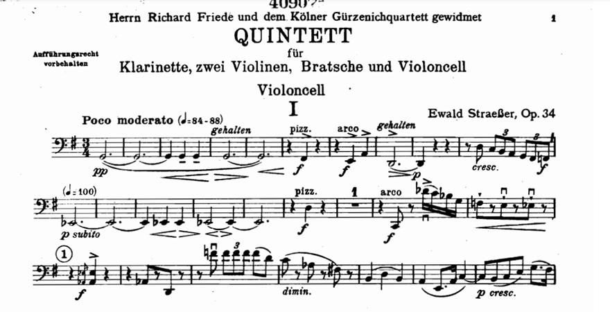 On April 4, 1933, the composer Ewald Straesser died in Stuttgart. MyCello remembers him by proposing a music video and the score of his Clarinet Quintet, Op.34.