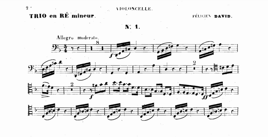 On August 29, 1876, the composer Felicien David died in Saint-Germain-en-Laye. MyCello remembers him by proposing a music video and the score of his Piano Trio No.2 in D minor.