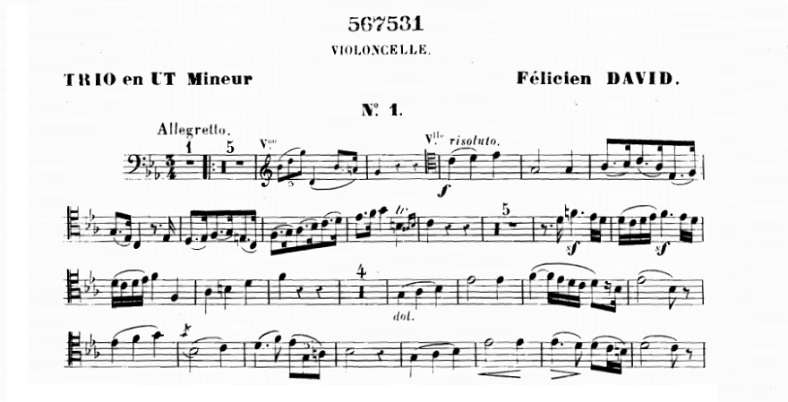 On August 29, 1876, the composer Felicien David died in Saint-Germain-en-Laye. MyCello remembers him by proposing a music video and the score of his Piano Trio No.3 in C minor.