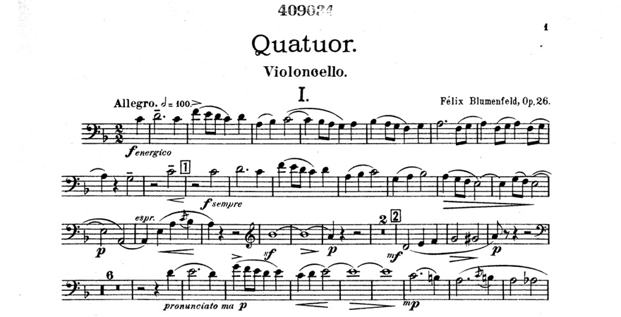 On January 21, 1931, the pianist and composer Felix Blumenfeld died in Moscow. MyCello remembers him by proposing a music video and the score of his String Quartet, Op.26.