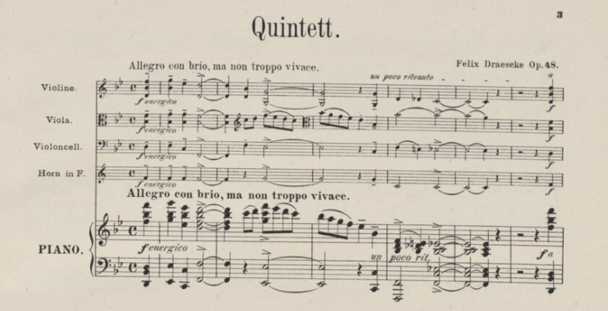 Felix Draeseke, Quintetto per pianoforte, violino, viola, violoncello e corno, Op.48