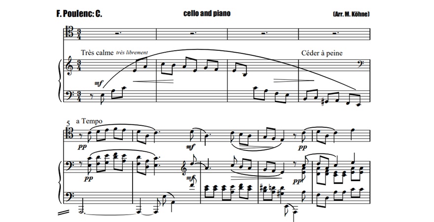 On January, 30, 1963, the pianist and composer Francis Poulenc died in Paris. MyCello remembers him by proposing a music video and the score of his C, da 2 Poèmes de Louis Aragon, FP 122, cello and piano version.