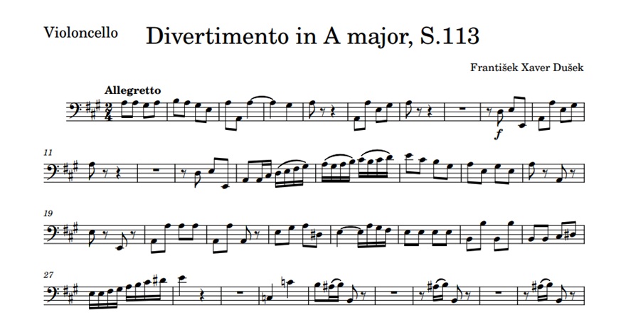 On February 12, 1799, the composer František Xaver Dušek died in Prague. MyCello remembers him by proposing the score of his Divertimento in A major, S.113.