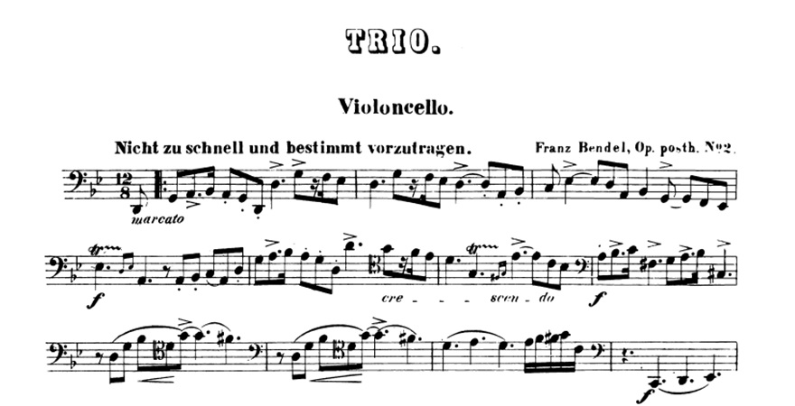 On July 3, 1874, the pianist and composer Franz Bendel died in Boston. MyCello remembers him by proposing the score of his Piano Trio, Op.Posth.No.2.