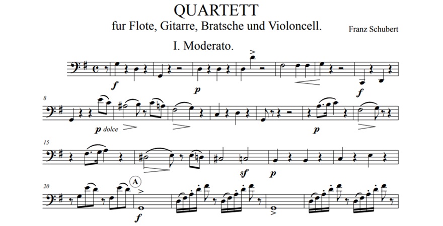 Franz Schubert, Quartet for Flute, Viola and Guitar, Op.21