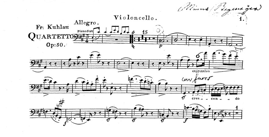 On March 12, 1832, the pianist and composer Fredrich Kuhlau died in Copenaghen. MyCello remembers him by proposing a music video and the score of his Piano Quartet, Op.50.