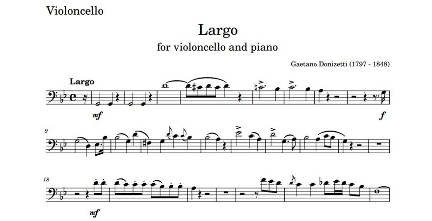 On November 29, 1797, the composer Gaetano Donizetti was born in Bergamo. MyCello remembers him by proposing a musical video and the score of his Largo in G minor.
