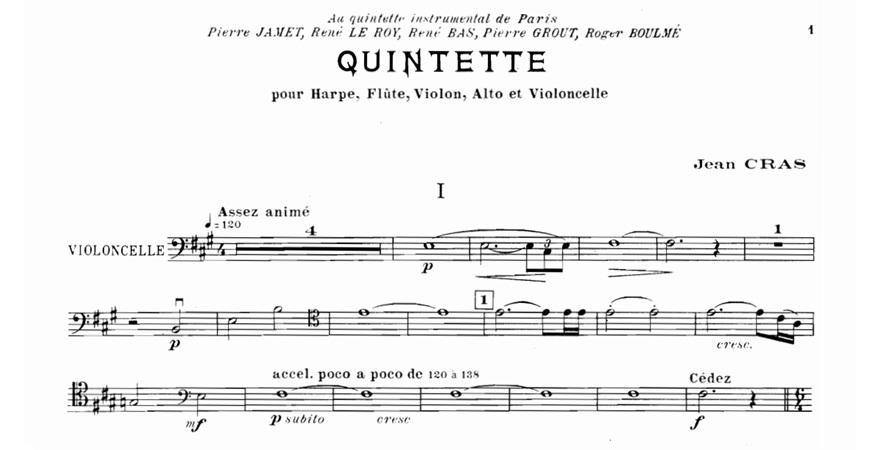 Jean Cras, Quintet for Harp, Flute, Violin, Viola and Cello