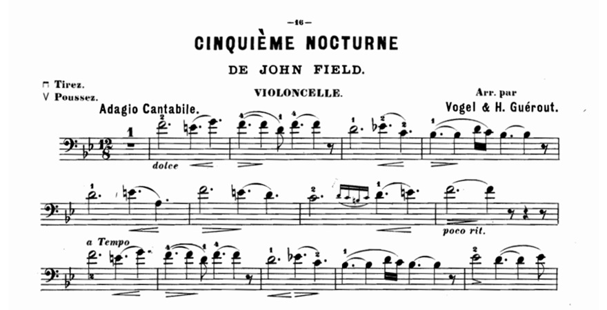 On July 26, 1782, the pianist and composer John Field was born in Dublin. MyCello remembers him by proposing a music video of his Nocturne no. 5 in B flat major and the score of the transcription for cello and piano.
