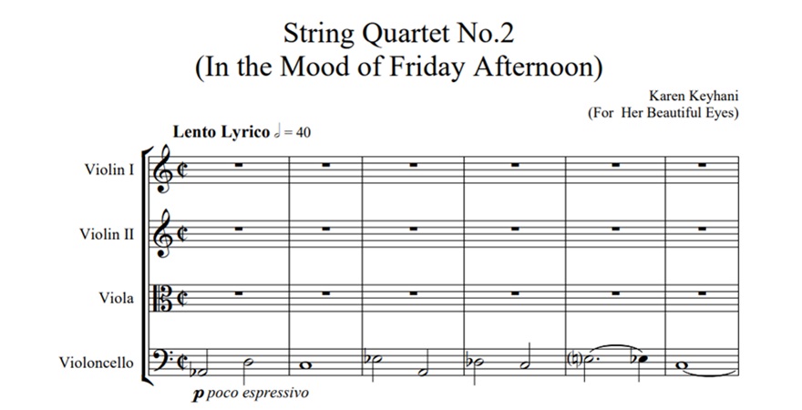 On June 23, 1979, the composer Karen Keyhani was born in Teheran. MyCello wishes him a happy birthday by proposing a music video and the score of his String Quartet No.2.