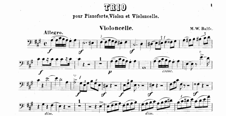 On 15 May 1808, the composer Michael William Balfe was born in Dublin. MyCello remembers him by proposing a musical video and the score of his Piano Trio.