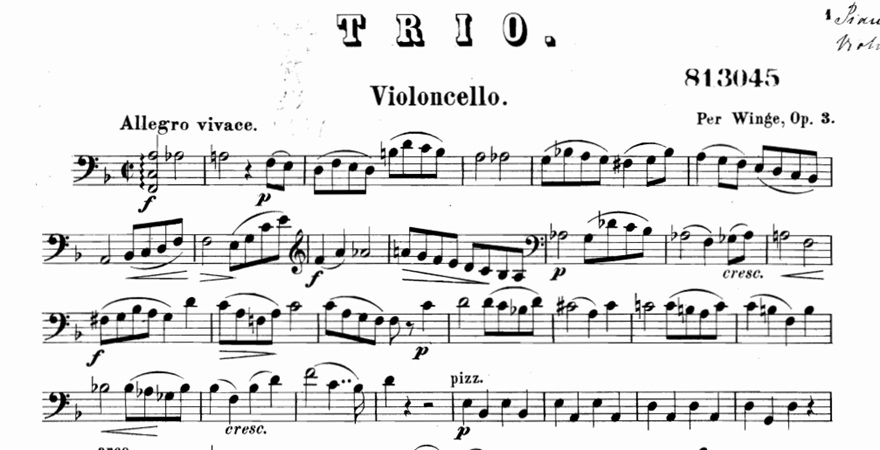On September 7, 1935, the composer Per Winge died in Oslo. MyCello remembers him by proposing the score of his Piano Trio, Op.3.