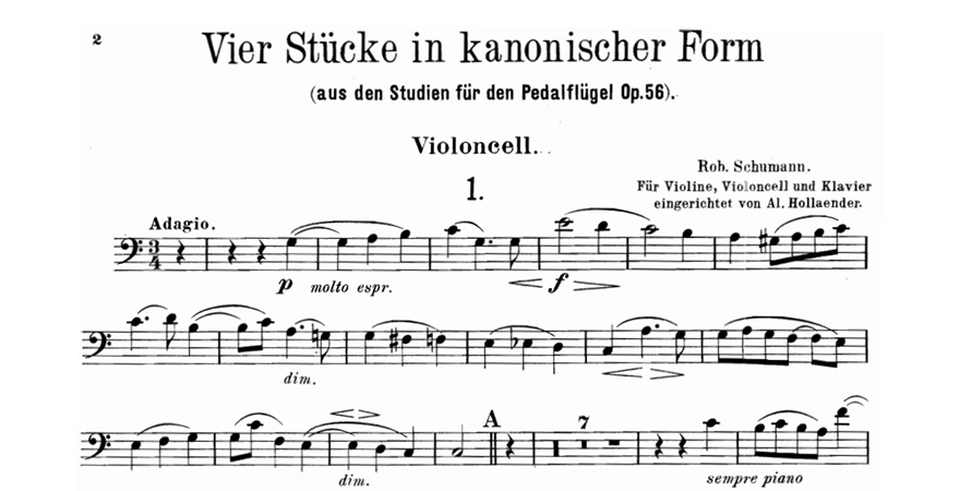 On July 29, 1856, the composer Robert Schumann died in Endenich. MyCello remembers him by proposing a music video and the score of the violin, cello and piano version of 6 Studien in kanonischer Form, Op.56.