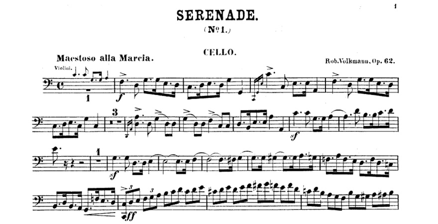 On April 6, 1815, the composer Robert Volkmann was born in Lommatzsch was born in Lommatzsch. MyCello remembers him by proposing a music video and the score of his Serenade No.1, Op.62.