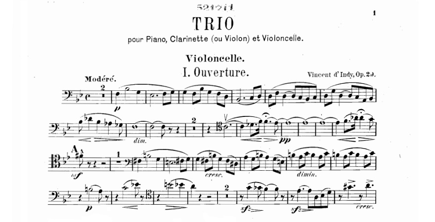 On March 27, 1851, the composer Vincent D’Indy was born in Paris. MyCello remembers him by proposing a music video and the score of his Trio for Piano, Clarinet, and Cello, Op.29.