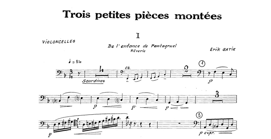 Il 1° luglio 1925, muore ad Arcueil il compositore Erik Satie. MyCello lo ricorda proponendo l’ascolto e lo spartito dei suoi 3 Petites pièces montées.
