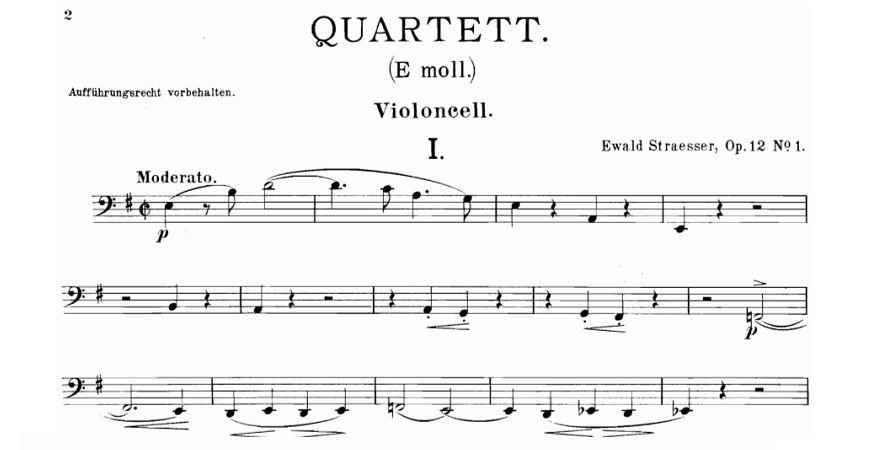 Il 4 aprile 1933, muore a Stoccarda il compositore Ewald Straesser. MyCello lo ricorda proponendo lo spartito del suo String Quartet, Op.12 n.1.