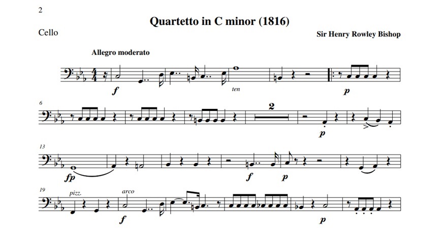 Il 30 aprile 1855, muore a Londra il compositore Henry Rowley Bishop. MyCello lo ricorda proponendo l’ascolto e lo spartito del suo String Quartet in C minor.