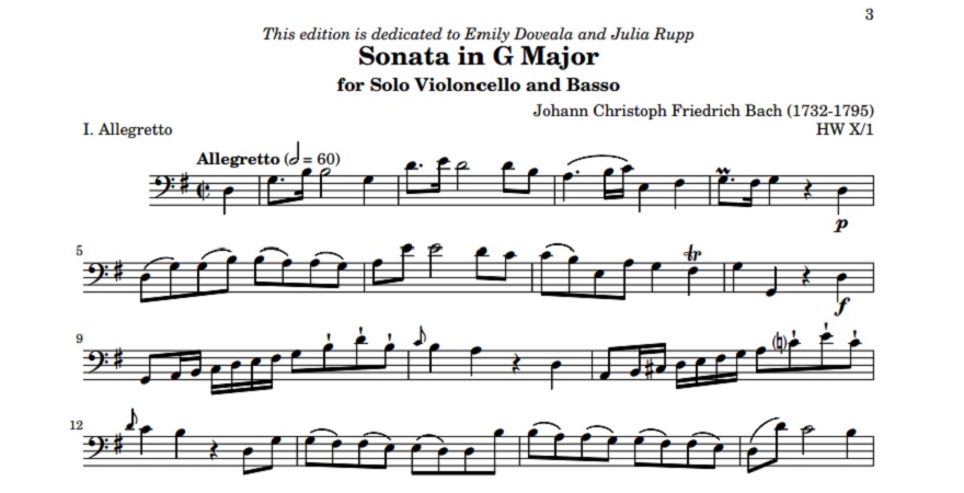Johann Christoph Friedrich Bach, Cello Sonata in G major, HW X/1