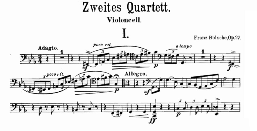 Il 20 agosto 1869, nasce a Wegenstedt il compositore Johannes Eduard Franz Bölsche. MyCello lo ricorda proponendo l’ascolto e lo spartito del suo String Quartet No.2, Op.27.