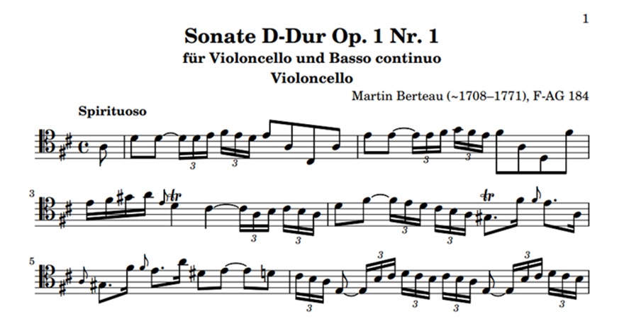 Martin Berteau, Cello Sonata in D major, Op.1 No.1