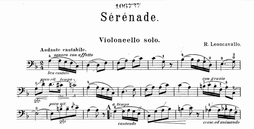 Il 23 aprile 1857, nasce a Napoli il compositore Ruggero Leoncavallo. MyCello lo ricorda proponendo l’ascolto e lo spartito della sua Sérénade for Cello and Piano.