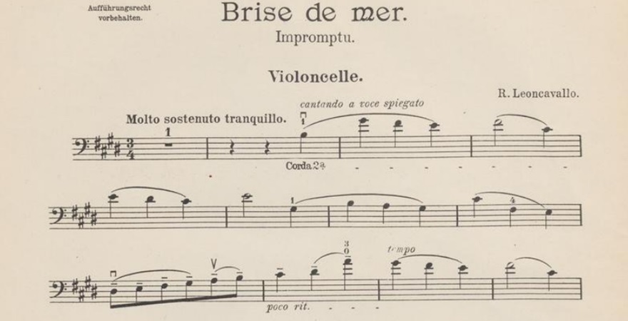 Il 9 agosto 1919, muore a Montecatini Terme il compositore Ruggero Leoncavallo. MyCello lo ricorda proponendo l’ascolto e lo spartito della sua Brise de mer.