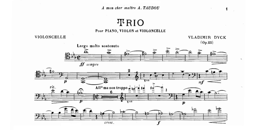 Il 19 marzo 1882, nasce a Odessa il compositore Vladimir Dyck. MyCello lo ricorda proponendo l’ascolto e lo spartito del suo Piano Trio, Op.25.