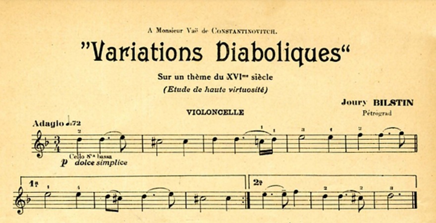 Il 10 febbraio 1887, nasce a Odessa il violoncellista e compositore Yuri Bilstin. MyCello lo ricorda proponendo lo spartito delle sue Variations Diaboliques.